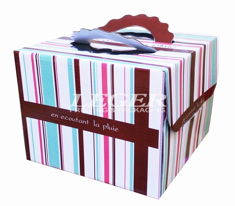 OEM Corrugated Cardboard Boxes , Custom Birthday Cake Box with carry handles