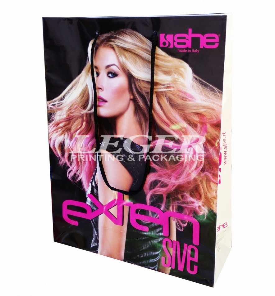 Printed Shopping Bags With Long Handles For Hair Extension Packaging