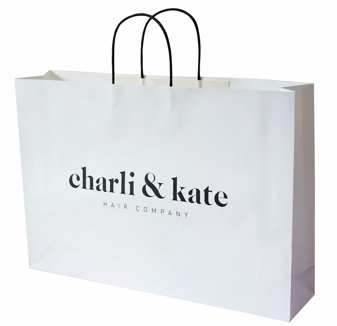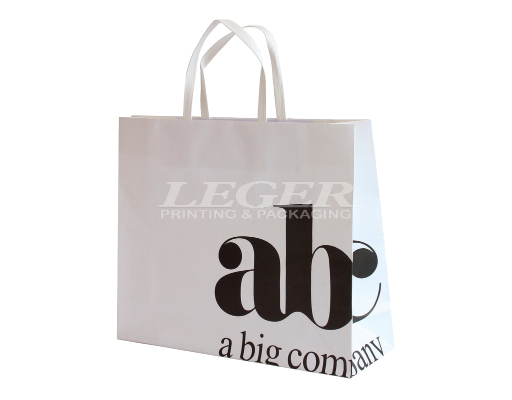 Recycled Paper Shopping Bags White With Black Logo , Garment Packaging Bags