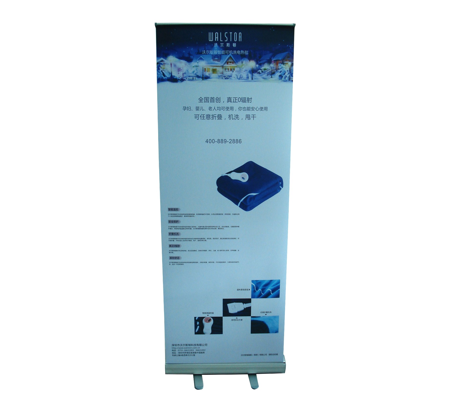 Indoor Retractable Roll Up Banner Size 85 x 200CM For Electric Blanket Sales