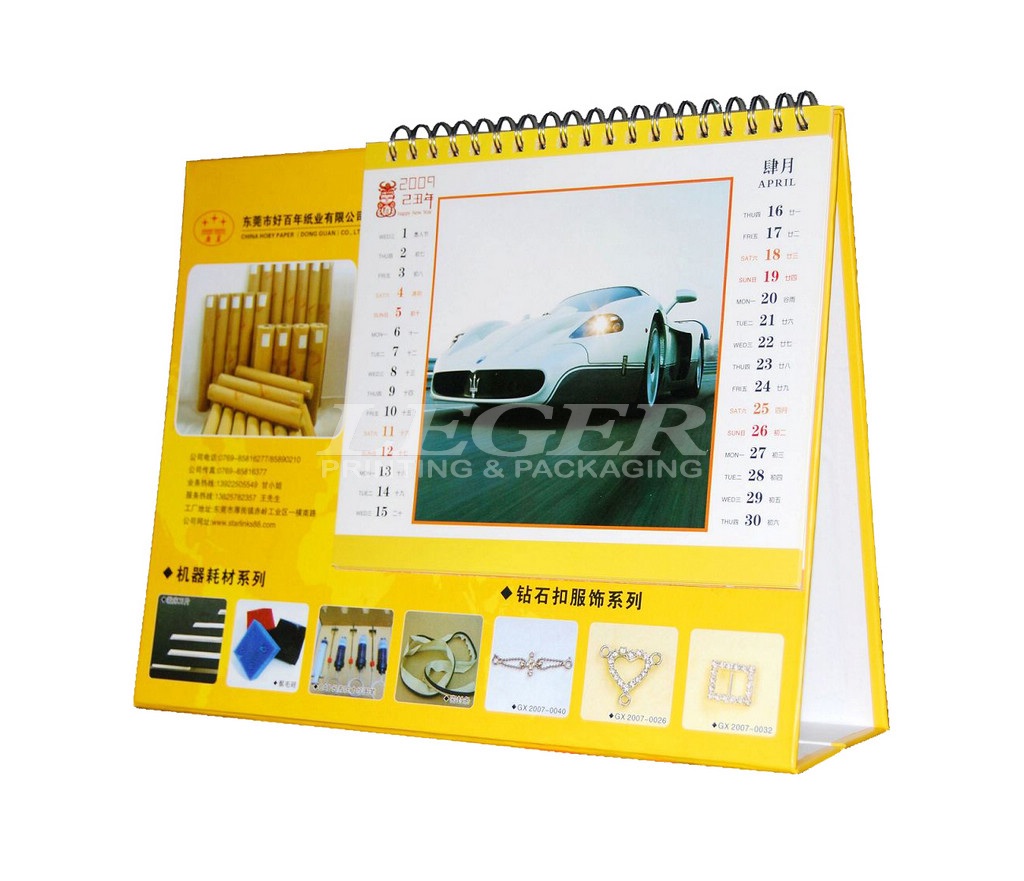 Desk Calendar Printing , Yellow Table Calendar With Silver YO Ring Bound