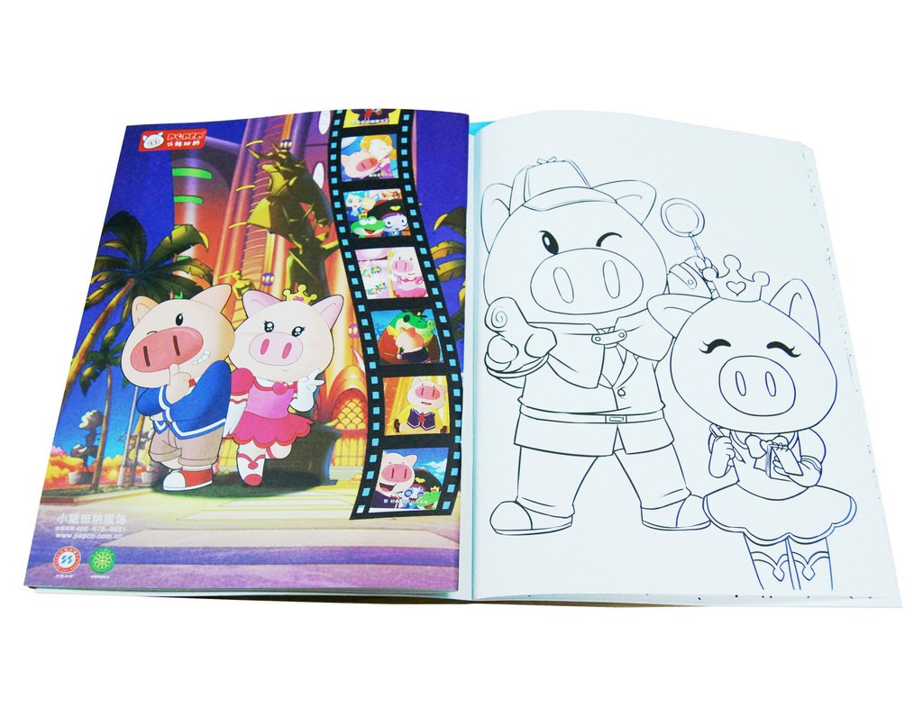 We printed many coloring books for our clients every year with competitive price. Coloring books, also called painting books, are usually with colorful printed covers and black printed pages. They are saddle stitch bound.