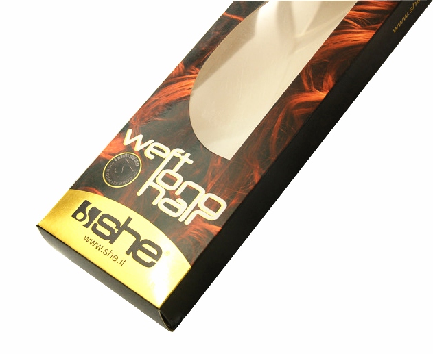 Hair extensions packaging boxes are usually with multifarious finishings, like foiling stamping, Spot UV, glister coating, laser patterns, clear window. Some hair extensions were packed by high-end rigid packaging box.